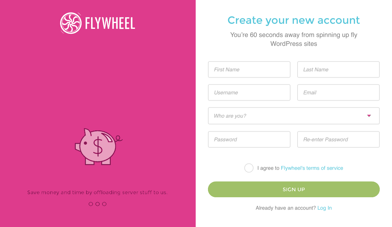 You can literally create a Flywheel account in under a minute. It's easier than creating a Facebook account.